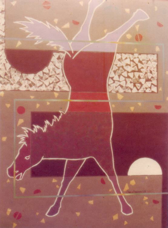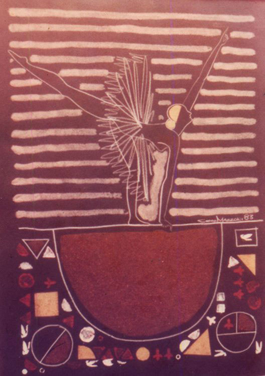 Os seus desenhos não são orientados em torno de um tema ou de qualquer problema específico de forma, antes buscam uma atmofera à qual se submetem forma e conteúdo. Até a imagem pré-estabelecida – Orixás, Madonas, bailarinas, desportistas – quando surge, nunca vem ligada a qualquer ideologia, entra na composição apenas como um pretexto, como um dado a mais no desenho. É no desenvolver de associações casuais que parecem obedecer à memória involuntária, na maneira como vai pensando as cores ou fazendo uso poético de uma metáfora que acaso apareça, que vai criando a atmosfera exata desejada, em soluções mutáveis e quase sempre imprevisíveis.