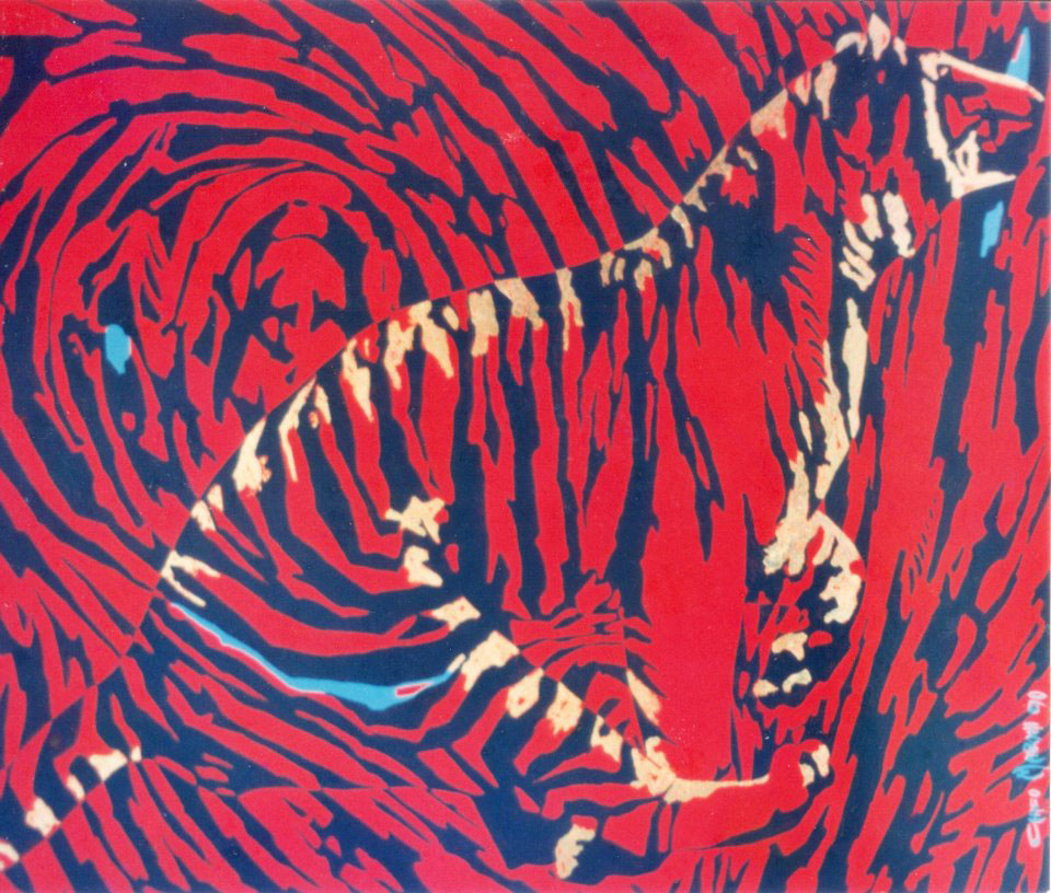 Os desenhos que Chico Mazzoni expôs no ICBA nos dão a medida da sensibilidade do artista ao pegar imagens comuns que a mídia oferece e armar com elas um jogo inteligente, estabelecendo uma relação irresistível entre o singelo e o sofisticado. No seu “Par ou Ímpar?” Mazzoni contrapõe com exatidão o positivo e o negativo nas imagens duplas, refletidas como nas cartas do baralho ou colocadas lado a lado, invertendo as cores de uma para outra, numa trama gráfica atraente em que não há diminuição de concentração entre figura e fundo. Embora o jogo se repita, as soluções sempre nos surpreendem, podendo vir numa mistura deco de curvas e retas,num atrevido op em diagonal ou em formas quase sígnicas para reforçar o motivo central, mantendo em todos o mesmo refinamento ”
